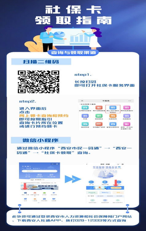 以上的方法不仅可以自己申领社保卡,还可以用来帮助身边不会使用智能手机的老年朋友进行办理。手边有电脑的,也可以登录西安市人力资源和社会保障门户局网站进行查询和预约,如果查询到您未制卡,您可按照系统提示进行制卡信息提交,或点击“社会保障卡申领”进行制卡信息提交。