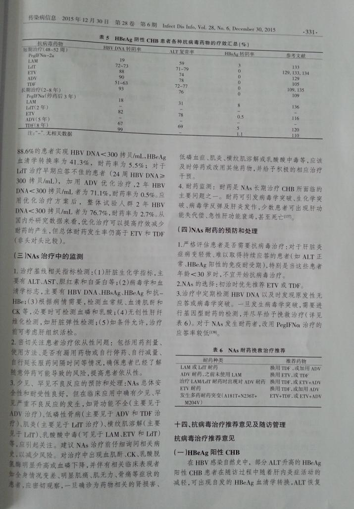 慢性乙型肝炎防治指南(2015更新版)