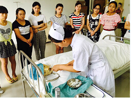 市八院护理部按照年度工作计划及护士分层培训管理规定,并紧密结合等级医院复审工作要求, 2016年7月19日至21日,组织安排利用三个下午时间,共抽调我院三名护士长,在示教室人员配合下,对各科选派的共18名护理师资人员完成了12项护理操作集中培训。按照项目分工及时间安排,手术室护士长尹金玲负责进行了“密闭式静脉输液技术、密闭式静脉输血技术、心肺复苏术”的操作示教;妇产科护士长宫普娟负责进行了“经鼻/口腔吸痰法、留置导尿技术、口腔护理技术”的操作示教;而“七步洗手法、穿脱隔离衣、心电监护、血糖监测、氧气吸入”操作示教则由外科护士长王晓楠负责完成。