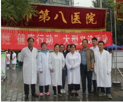 为了积极响应市卫计委“服务百姓健康行动”的号召,9月9日上午9时,市第八医院组织肝病科、感染科、中西医结合科、外科专家等一行13人,冒着小雨来到蓝田县新城广场,和市卫生系统兄弟单位一起,参加由市卫计委组织的“服务百姓 健康行动”大型义诊活动。