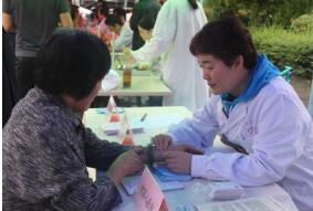 虽然下着雨,但不少患者还是早早的来到广场等待。专家们冒雨和工作人员一起打起了遮雨棚,为了减少老百姓的等待时间,他们连身上的雨水都顾不得擦拭,就穿上白大褂开始了义诊。肝病六科的王宏利主任不仅耐心的为患者答疑解惑还现场普及肝脏保健知识;感染二科的李燕平主任叮嘱高血压患者日常生活的注意事项,按医嘱按时服药,保持健康的饮食生活习惯;患有乙肝的大妈仔细听着肝病二科李瑛主任的讲解,又结合自身实际向医生提出自己的疑问;中西医结合科主任杨璞叶通过望闻问切为患者辨证施治,还将开好的药方递到患者手中,叮嘱他们如何用药;外科大夫邓涵为患有关节病的大爷提供了专业的卫生保健知识;护士们为前来问诊的老百姓量血压、测血糖,忙的不可开交。