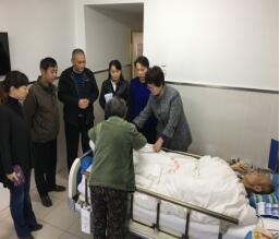 在九月初九重阳佳节到来之际,10月27日上午,老虎机平台 院长郭雅玲、业务院长张艳、后勤院长郭宗虎,带领人事科、工会、退管办、创文办等科室人员看望和慰问了市第八医院高龄、多病、生活不能自理的部分退休职工,为他们送去了关怀和问候。