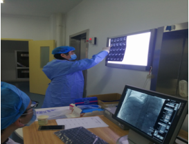该患者发现患乙型肝炎肝硬化10余年,既往有上消化道出血史,曾行3次胃镜下食管、胃底曲张静脉套扎及硬化治疗。3天前,患者再次出现呕血、黑便等症状收入市第八医院,因门脉高压,导致患者食管胃底曲张静脉破裂,伴大量出血,经内科治疗,出血不止,随时都有生命危险。而患者肝脏萎缩明显,不具备实施TIPS(经颈静脉肝内门腔静脉分流术)手术的条件。经皮经肝曲张静脉栓塞及粘堵术是救治门脉高压致食管胃底静脉曲张破裂大出血即时止血的一种有效方法,经与患者家属沟通,医院果断决定为患者行经皮经肝曲张静脉栓塞及粘堵术。由于门静脉内血栓形成、严重堵塞,手术难度极大,在西安交通大学附属第一医院教授、主任医师薛挥的指导下,历经近4个小时的手术奋战,最终手术取得圆满成功,患者转危为安。