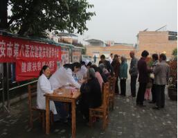 为助推脱贫攻坚,健康扶贫工作,落实西安市卫计委万名护士送医乡村 助力百姓健康脱贫活动 ,5月9日上午,市第八医院副院长张艳带领医院专家及医务科、护理部、防保科、医保办、宣传科一行11人,来到长安区上北良村,对村里60岁以上老人及贫困户开展了健康扶贫义诊和扶贫政策宣教活动。