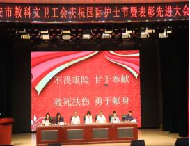 5月14日下午,市教科文卫工会在西安市结核病院举办了“西安市教科文卫工会庆祝国际护士节暨表彰先进大会”,市总工会副主席魏大宝珠、市中医药管理局局长孟祥东、市教科文卫工会主任王勇共同出席并发表重要讲话。