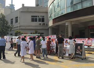 6月11日-6月17日,在门诊楼前显示屏上滚动播放今年活动主题“为他人着想,捐献热血,分享生命”。6月14日当天,输血科、医务科在我院门诊楼前进行无偿献血宣传咨询活动。输血科工作人员利用自己的专业优势为前来咨询的患者、家属就用血、献血等问题进行了解答,得到大家一致好评。 此次活动得到了院领导和全院各科室的大力支持,院长郭雅玲和副院长郭宗虎亲临活动现场指导工作。郭院长要求医务人员在做好精准化患者血液管理、积极推动合理用血、确保患者安全的前提下,积极投入到宣传及无偿献血中去,发挥医务工作者的表率作用。