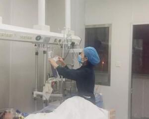 重症医学科的监护室。在监护室里,重症医学科的医务人员对老人进行了全面、细致的检查,确诊老人为流行性乙型脑炎重症病例,立即制定了抢救的治疗方案、护理措施,24小时不间断守护在老人床旁。14日下午,老人的氧饱和度突然下降,考虑是中枢性呼吸衰竭所致,重症医学科当即联系了麻醉科,麻醉科主任刘秋桂亲自为老人实施气管插管。可就在插管过程中,刘主任发现老人咽后壁有一处息肉,无法插管。为了抢救患者,重症医学科又联系了外科,外科主任李力在接到电话后立即赶到老人床旁,为他实施了气管切开术,通过呼吸机辅助呼吸,缓解了老人的病情。