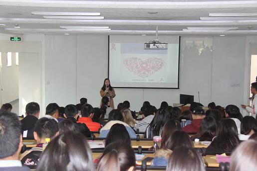 市第八医院护理部任艳叶主任做了艾滋病可防可控不可怕,主动检测是关键的专题讲座,从艾滋病概念、流行现状、危害、艾滋病自检等方面普及了艾滋病相关知识,志愿者还向同学们发放了宣传手册。任主任用幽默的语言,图文并茂的方式,深入浅出的讲解了艾滋病的危害、预防及自检相关知识,呼吁大家洁身自好,提高自我防范能力。