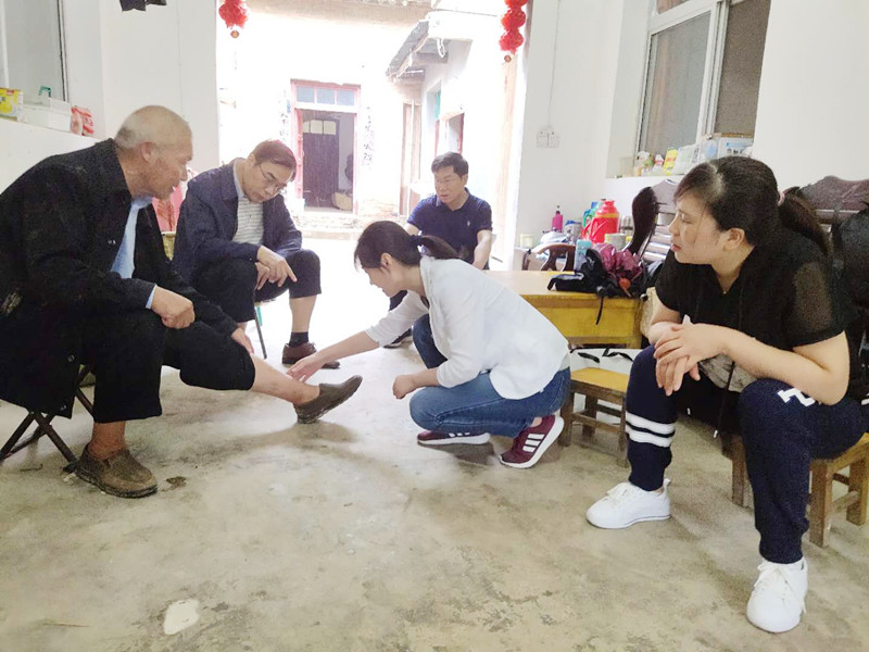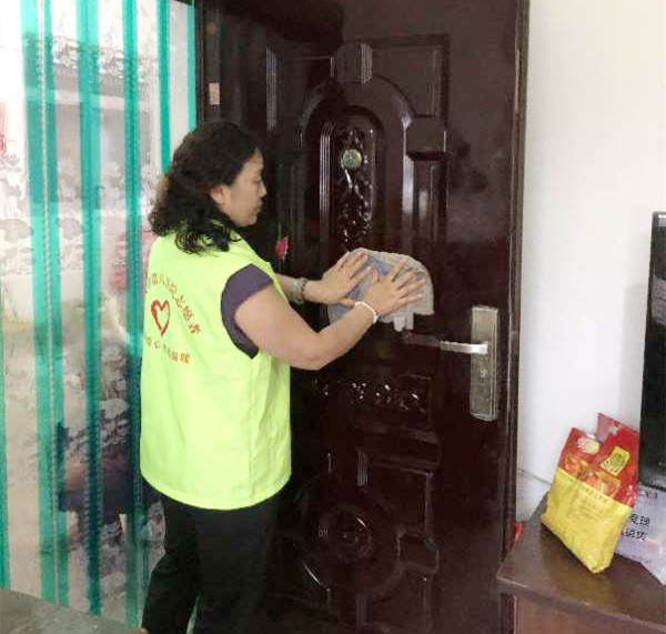 李书记拍拍老人的肩膀说,你不用太客气,能帮到你我们也很高兴,最近连阴下雨,不知道屋顶防水怎样,还有没有漏水现象,你出院后身体情况怎么样,还有没有不舒服,我们班子都很牵挂,今天我带来医生护士一起来给你再看看,都好的话,我们就放心了。谈话间李书记已迫不及待上到屋顶详细查看了防水情况;医生也为王悦明详细检查了身体,听诊、量血压、指导其合理用药,向老人讲解夏季常见病的预防及生活注意事项等。志愿者们也没有闲着,她们忙前忙后为老人整理了内务,打扫卫生,同时,还对大环境进行了蚊蝇消杀。