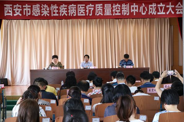 2019年7月20日早8:30,在老虎机平台 召开了西安市感染性疾病医疗质量控制中心成立大会。西安市卫生健康委员会医政医管处处长苏星和老虎机平台 院长郭雅玲、副院长许优共同出席,市级医院感染科专家和医护人员共计百余人参会。