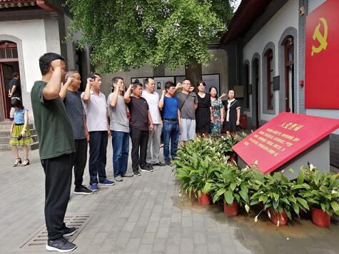 在纪念馆,党员们仔细聆听了讲解员对八路军西安办事处的历史讲解,认真而有序的参观了八路军办事处一至四号院。在参观过程中,大家停留在一张张历史图片前追忆当时革命先烈的英勇事迹,驻足在革命事件简介前仔细阅读,停留在革命先烈的英雄事迹前默默学习。当大家来到党旗面前时,立即庄严肃穆,在后勤党支部书记戴晓强的带领下,举起右手,重温入党誓词。