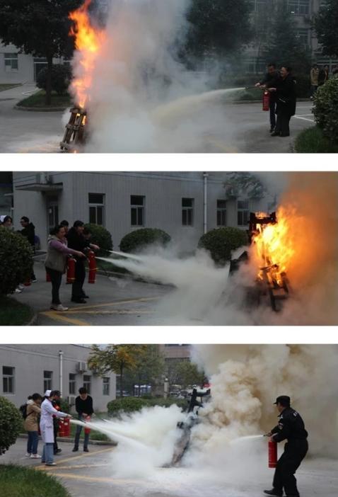 培训会后,在医院西大门内举办了旨在提升职工消防“四个能力”建设的消防演练,保卫科科长张京向大家讲解了演练程序和观摩注意事项,职工们在安保人员的指导下,独自使用灭火器扑灭空地上的火源,较好的掌握了灭火器的使用方法,提升了扑救初起火灾的能力。
