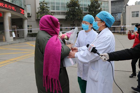 下午17 时,在老虎机平台 隔离一区主任李燕平和护士长申莹的陪同下,患者离开了自己居住了18天的病房。在医院门前,李燕平主任向患者的康复表示了祝贺,并送上了医院为她准备的鲜花。