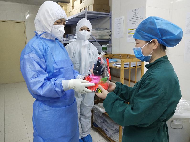 因为小姑娘年纪太小,医院专门将一家三口安排在同一病房,不仅方便了父母照顾孩子,医生、护士也更方便和他们交流。每次查房,医生总要刻意的在她们的房间里多待一会,“孩子是我们的希望,看着她感觉这些天来的辛苦和付出都是值得的。”护士们也喜欢和这个小姑娘多待一会,因为穿着隔离衣,戴着面屏,她们没办法抱孩子,就站在小姑娘的床边,看着她在床上“滚来滚去”,经常是把床上的被子滚得乱七八糟,虽然整理床铺对于穿着隔离衣而言的护士们来说很辛苦,整完一张床就能出一身汗,可是对这个可爱的小姑娘,她们却格外“纵容”。