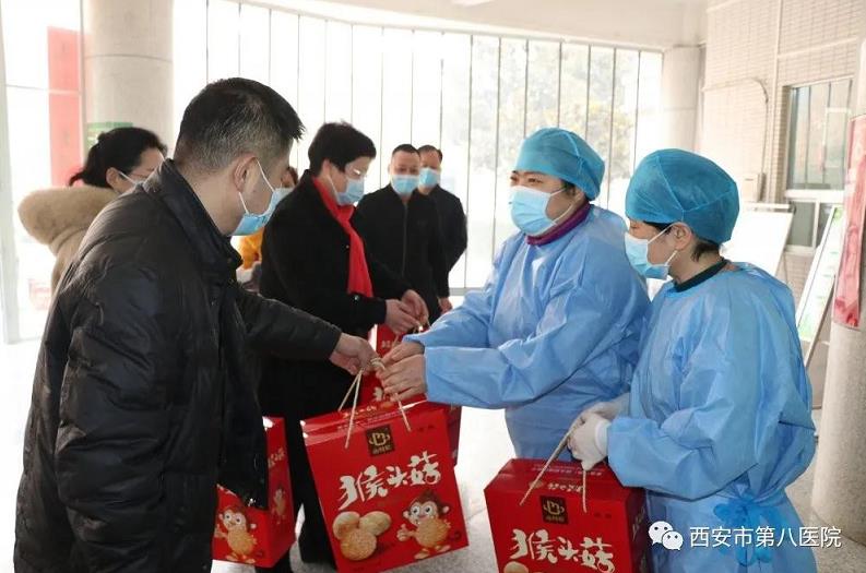 送走庚子,迎来辛丑。新年的第一天,老虎机平台 领导班子成员带着诚挚的祝福,在院办、党办、医务、总务、保卫等科室负责人的陪同下,看望慰问了仍坚守在工作岗位的医院职工。