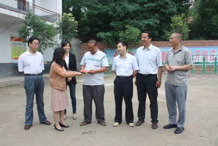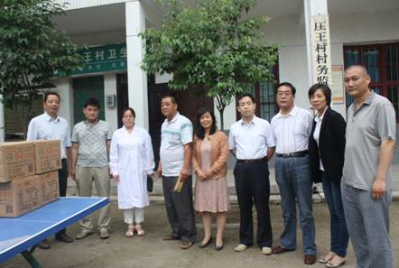 为了更进一步落实“两联一包”扶贫工作,2014年6月25日上午,市八院领导班子成员、医疗专家及政工科工作人员,带着八院全体职工的爱心,来到院领导“一对一” 结对帮扶对象临潼区庄王村,送上了我院通过“共产党员捐一份特殊的党费,共青团员捐一份特殊的团费,职工捐一份爱心”的 “爱心捐款”活动募捐到的3655元爱心捐款。同时还结合季节发病情况,为庄王村村民带去了百余瓶84消毒液及其配制使用说明;手足口病的防治知识宣传资料等。