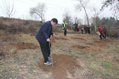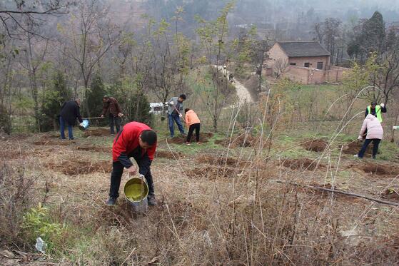 11月29日,市计生协秘书长涂洪柱带队一行7人,市第八医院党委书记李学敏带队,医院全体支部书记及部分党员干部共19人前往临潼庄王村王悦明家,正式启动产业扶贫项目。到家后,涂秘书长和李书记再次和王悦明进行了详细沟通交流,确定方案后,组织大家分头开始干活,同志们分工协作,带上铁锹、镐头,不畏寒冷,不怕劳累,都热情高涨地为王悦明平整闲置的坡地,挖坑、种树、浇水。在大家的努力下,到下午16:30,近80棵花椒树全部栽种到位,老人看着半坡的花椒树,高兴的合不拢嘴,脸上一直洋溢着幸福的笑容。