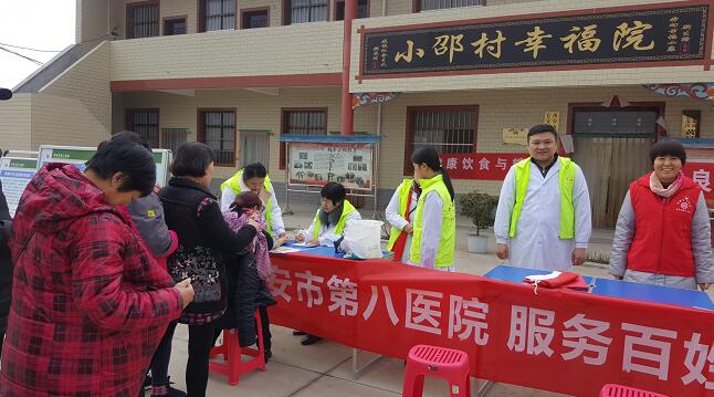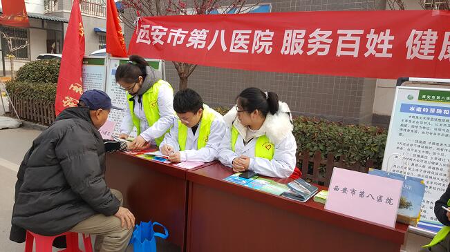 2019年3月4日上午,市第八医院党委书记李学敏带领医疗志愿者一行11人,来到了高陵区通远街道何村社区中心广场,参加西安市文明委等8部门联合组织举办的西安市2018年度学雷锋志愿服务四个最美(最佳)先进典型表彰暨2019年学雷锋志愿服务集中行动启动仪式,组织开展了健康义诊志愿服务活动。为前来咨询的群众答疑解惑、用药指导和健康指导,从饮食到运动,从日常保健到疾病预防,受到了当地群众的好评。同时,有针对性的开展了春季传染病预防的宣教,并发放了手足口、出血热和流感等疾病防治方面的宣传资料160余份。