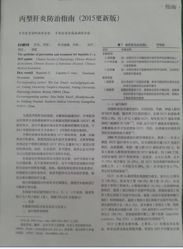 丙型肝炎防治指南(2015更新版)
