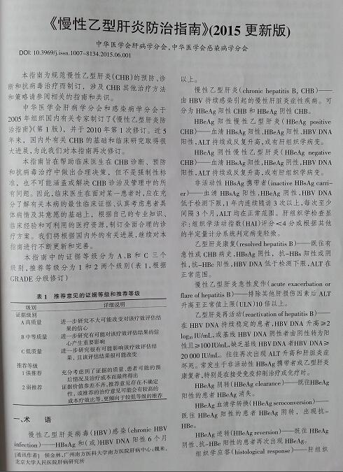 慢性乙型肝炎防治指南(2015更新版)